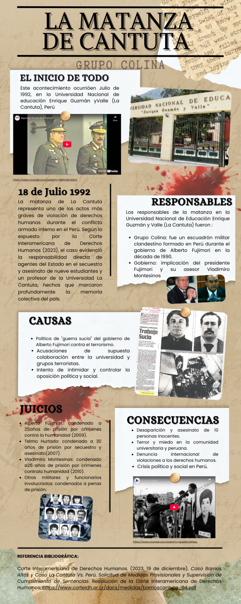 Durante las décadas de 1980 y 1990, el Perú atravesó uno de los periodos más violentos de su historia. En medio del conflicto armado interno, tanto grupos subversivos como agentes del Estado cometieron actos que vulneraron gravemente los derechos humanos. Casos como la matanza de La Cantuta y la masacre de Lucanamarca evidencian el nivel de brutalidad alcanzado y las profundas heridas que aún persisten en la sociedad peruana. Solo recordando con verdad y escuchando el dolor de quienes sufrieron, podemos construir un futuro donde estos hechos no vuelvan a repetirse.