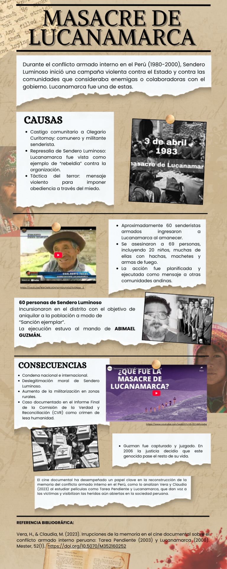 Vera, H., & Claudia, M. (2023). Irrupciones de la memoria en el cine documental sobre el conflicto armado interno peruano: Tarea Pendiente (2003) y Lucanamarca (2008). Mester, 52(1). https://doi.org/10.5070/M352160252